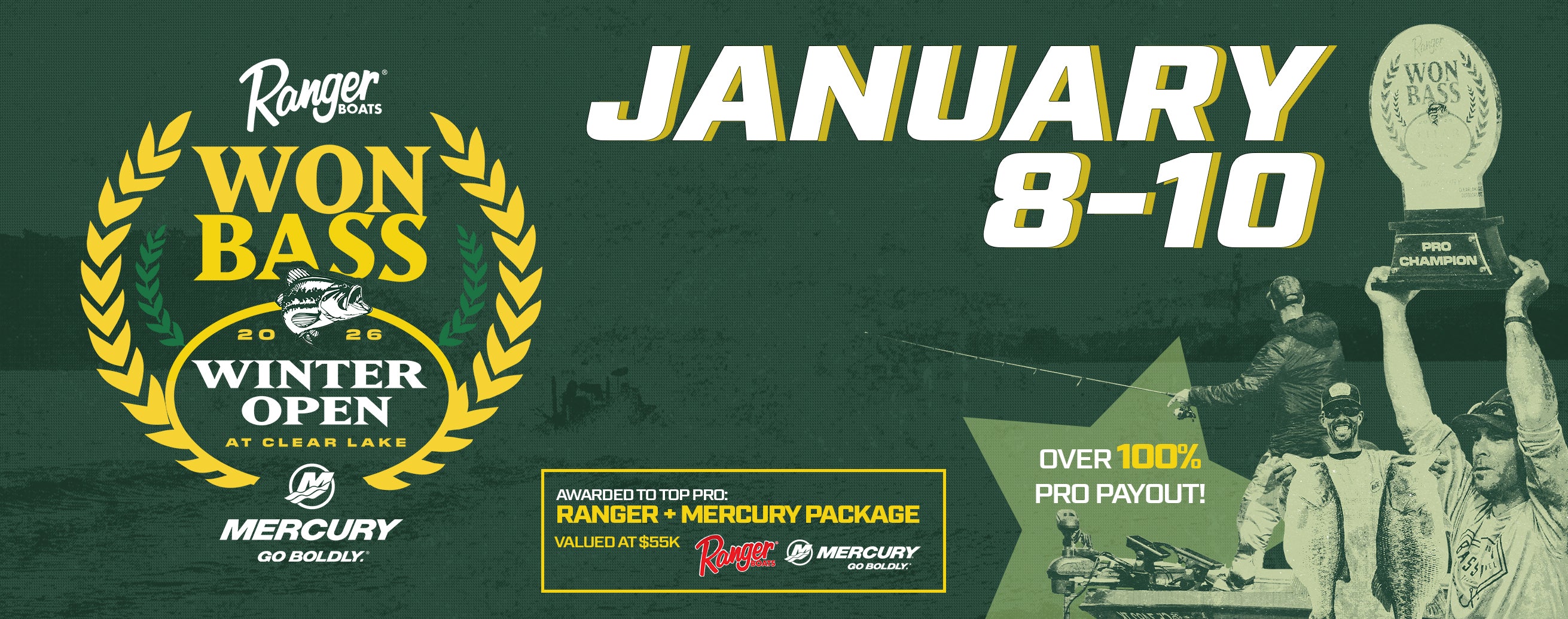 Anyone above the age of 16 can enter WON BASS Open events if that angler has paid membership for that season. Pro anglers (boaters) are encouraged to have safe and adequate tournament boats with a functioning live well and carry sufficient insurance for both the boat and passengers.